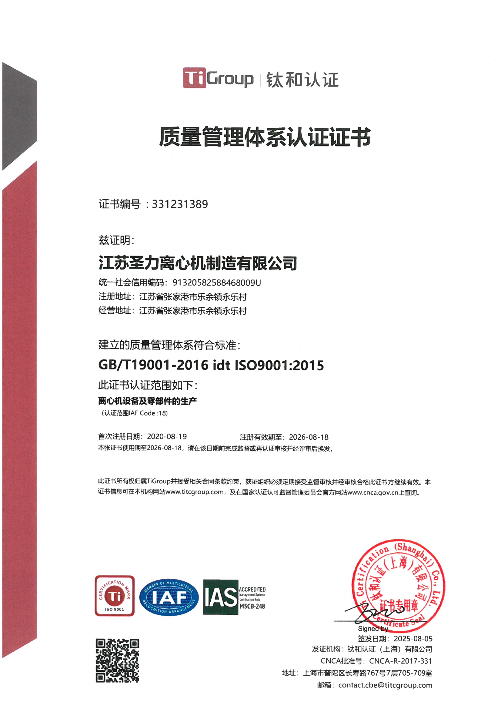 江蘇圣力離心機(jī)制造有限公司是國內(nèi)分離機(jī)械行業(yè)中主要的離心機(jī)生產(chǎn)企業(yè),對離心機(jī)的研究、設(shè)計(jì)、制造有多年的歷史,擁有齊全的設(shè)備、完善的檢測手段。公司已通過IS09000國際質(zhì)量體系認(rèn)證、ISO14001環(huán)境管理體系認(rèn)證、ISO45001:2018職業(yè)健康安全管理體系認(rèn)證和CE認(rèn)證,是江蘇省高新技術(shù)企業(yè),曾榮獲國家和地方多項(xiàng)榮譽(yù)稱號。